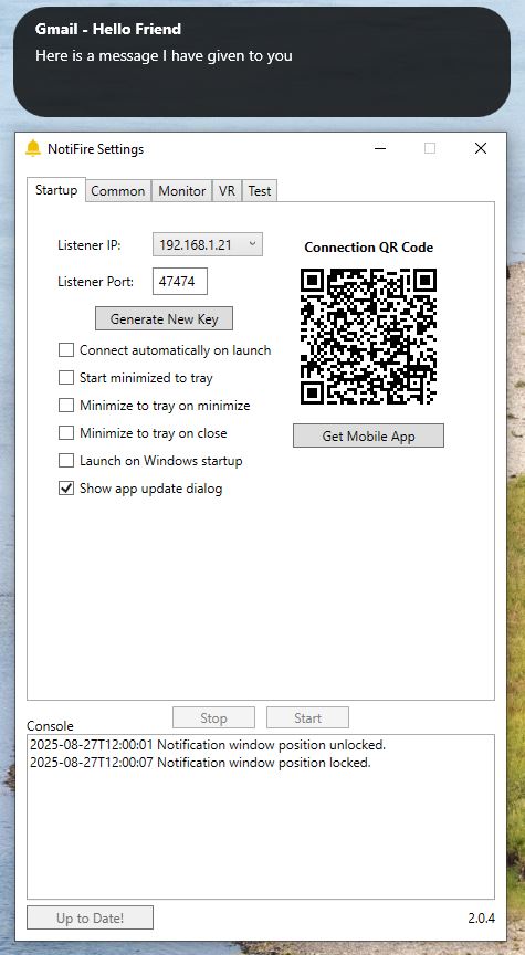 NotiFire is a simple two-part solution that brings your Android phone notifications directly to your desktop/VR screen in real-time.