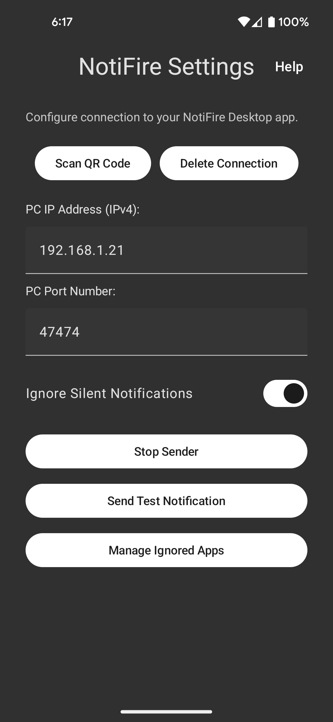 - Start/Stop control – Toggle notification forwarding on or off as needed